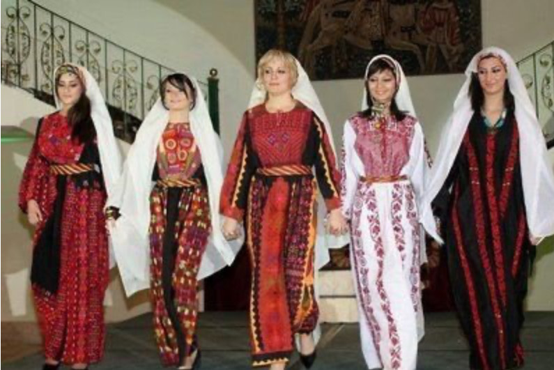 Entre los países levantinas y árabes destacan las prendas alargadas y coloridas.a diferencia de los países del golfo pèrsico donde coinciden en la mayorìa de sus prendas entre los países levantinos se perciben diferencias.En el caso de Siria, dependiendo de la regiòn en la que te encuentres te puedes encontrar con diferentes vestimentas folclóricas.